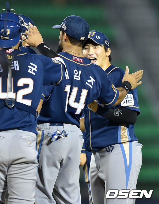 경기 종료 후 NC 선수들이 승리의 기쁨을 나누고 있다. /sunday@osen.co.kr