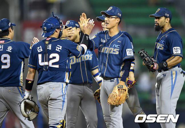 경기 종료 후 NC 선수들이 승리의 기쁨을 나누고 있다. /sunday@osen.co.kr