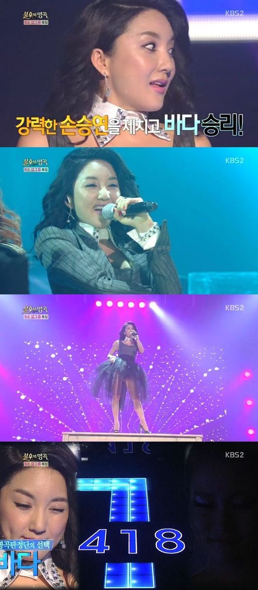 이날 바다는 괴물 보컬이라 불리며 떠오르고 있는 신예 손승연과 마지막 대결을 펼쳤다. 손승연은 앞서 연속 우승을 하고 있던 옴므를 무찌르고 결승 무대에 오른 상황이었다. 바다는 여자 패널과의 정면 승부에 대해 다소 긴장된 모습을 보였지만, 무대 위에서는 한국판 드림걸스의 귀환을 알리는 듯 화려했다.