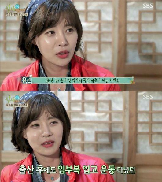 유선은 24일 오전 방송된 SBS 교양프로그램 '잘 먹고 잘 사는 법-식사하셨어요'에서 "20kg 어떻게 뺐냐"는 이영자의 질문에 "옷이 안 맞으니 정말 짜증나더라. 임부복을 입고 운동을 다녔다"고 말했다.