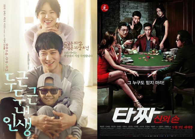 톱스타 강동원, 송혜교가 부부로 호흡을 맞춘 '두근두근 내 인생'은 김애란 작가의 동명 소설을 원작으로 한다. '정사', '스캔들:조선남녀상열지사'로 유명한 이재용 감독이 연출을 맡았다. 자신보다 빨리 늙어가는 아들을 끝까지 지켜주려는 부모의 이야기를 그린 작품. '타짜: 신의 손'이 경쾌한 오락영화라면 이 작품은 가슴 따뜻한 감동을 전하는 영화. 강동원은 지금까지와는 또 다른 소탈한 매력을, 송혜교는 친근하고 포근한 연기를 선보인다. 9월 3일 개봉.