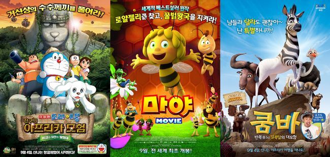'라이온 킹', '잠베지아' 제작진의 신작 영화 '쿰바: 반쪽무늬 얼룩말의 대모험'은 반쪽무늬 얼룩말 쿰바가 완벽한 얼룩말이 되기 위해 마법의 연못을 찾아 떠나는 내용. 노홍철이 홍보대사를 맡아 이목을 끄는 가운데 다양한 아프리카 동물들이 등장한다. 9월 4일 개봉.