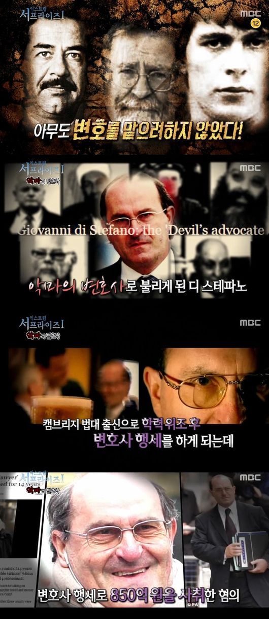 24일 오전 방송된 MBC 예능프로그램 '신비한TV TV 서프라이즈'(이하 '서프라이즈')에서는 범죄자들의 변호를 맡아온 조반니 디 스테파노 변호사의 사연이 공개됐다.