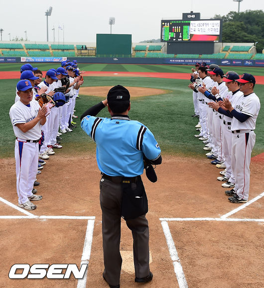 24일 전라북도 군산시 사정동 월명야구장에서 제1회 KBO총재배 시도대항 전국 직장인 야구대회 결승전 부산 세종공업과 전북 세아베스틸의 경기가 열릴 예정인 가운데 양팀이 박수를 보내고 있다.