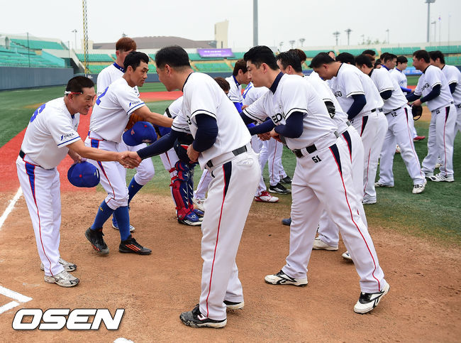 24일 전라북도 군산시 사정동 월명야구장에서 제1회 KBO총재배 시도대항 전국 직장인 야구대회 결승전 부산 세종공업과 전북 세아베스틸의 경기가 열릴 예정인 가운데 양팀이 선수들이 악수를 나누고 있다.
