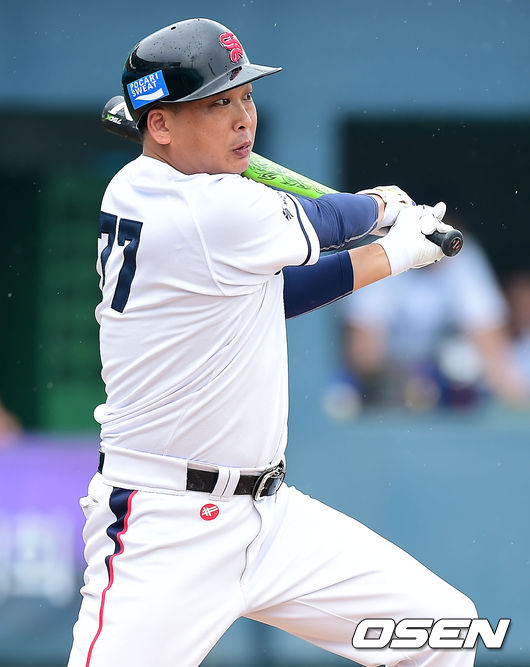 24일 전라북도 군산시 사정동 월명야구장에서 열린 제1회 KBO총재배 시도대항 전국 직장인 야구대회 결승전 부산 세종공업과 전북 세아베스틸의 경기,2회초 1사 주자 만루 세종공업 심재훈이 역전 2타점 적시타를 날리고 있다.