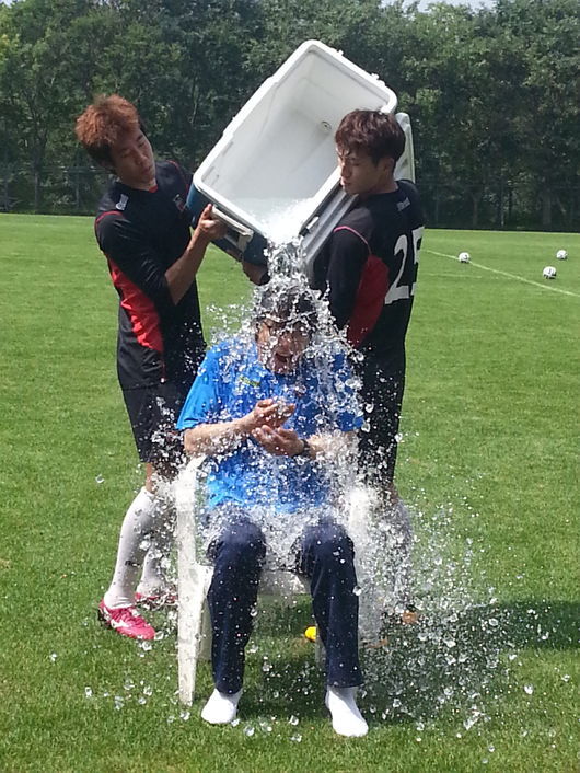 배우 최수종의 지목을 받은 황선홍 감독은 지난 22일(금) 오전 훈련을 마친 뒤 아이스 버킷 챌린지에 동참했다.