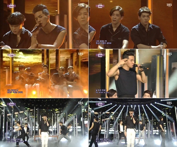 위너는 24일 오후 방송된 SBS 음악방송 '인기가요'에 출연해 데뷔곡 '공허해' 무대를 꾸몄다.