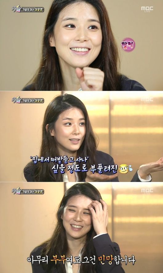 이보영은 24일 오후 방송된 MBC 연예정보프로그램 ‘섹션TV 연예통신’에서 “우리 이야기가 가끔 너무 포장된 것 같다. 얘기만 들으면 (지성이 나를) 진짜 떠받들고 사나 하는 느낌이 들 때 있다”고 말했다.