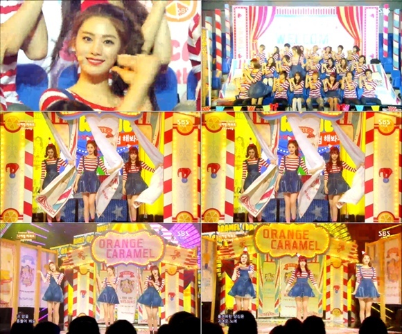 오렌지캬라멜은 24일 오후 방송된 SBS 음악방송 '인기가요'에 출연해 신곡 '나처럼 해봐요' 무대를 공개했다.