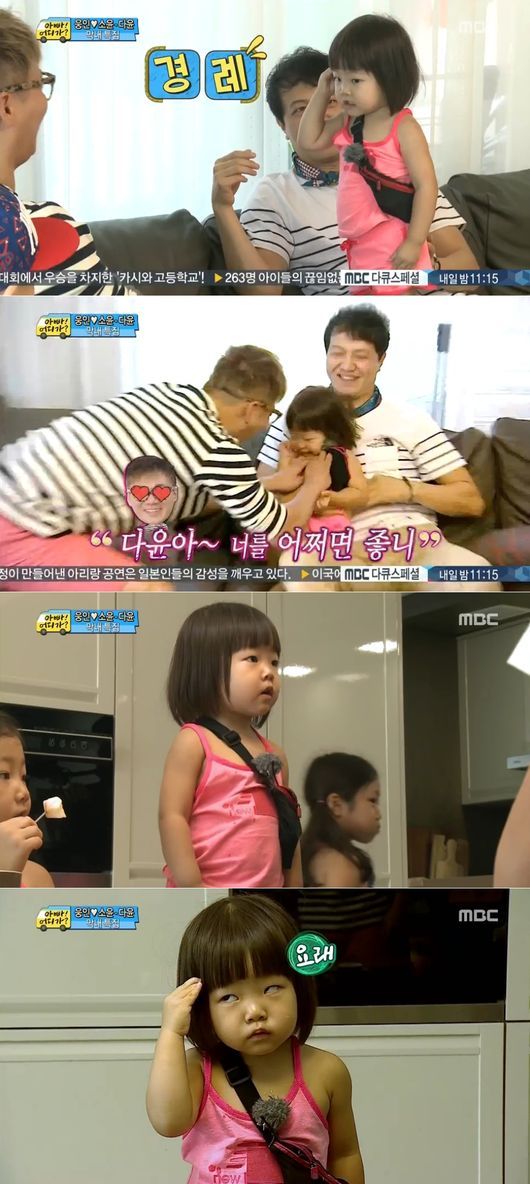‘아빠 어디가’ 정웅인의 막내딸 다윤이 개인기를 선보이며 귀여운 매력을 발산했다.