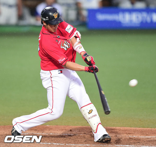 24일 오후 대구 시민구장에서 열린 '2014 한국야쿠르트 세븐 프로야구' 삼성 라이온즈와 SK 와이번스의 경기 3회초 1사 2,3루 최정이 2타점 2루타를 치고 있다.