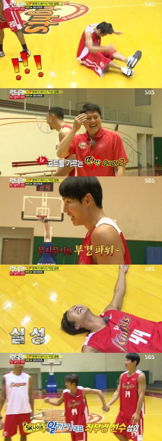 이어 하하는 최부경 선수의 딱밤을 맞고 마치 공중부양을 하듯 붕 떠올라 농구장으로 쓰러졌다.