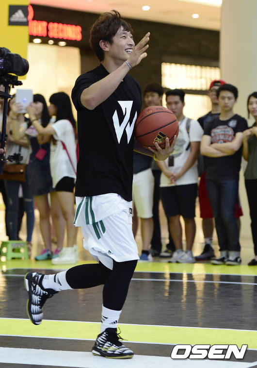 24일 오후 서울 영등포 타임스퀘어 아트리움에서 열린 아디다스 '크레이지코트 2014' 레인보우 연예인 농구팀 vs 제물포 고등학교의 경기, 레인보우팀 정진운이 입장하고 있다.