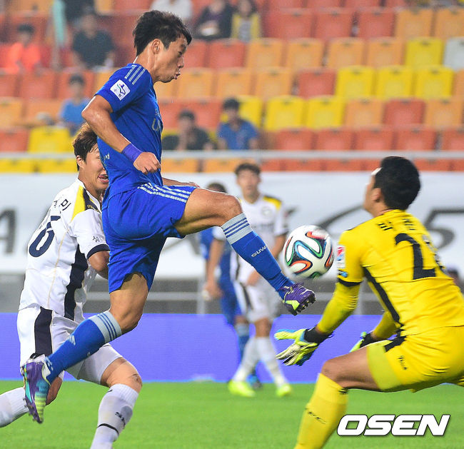 24일 오후 수원시 수원월드컵경기장에서 열린 현대오일뱅크 K리그 클래식 2014 성남FC와 수원 삼성의 경기, 전반 수원 염기훈이 골 찬스를 놓치고 있다.