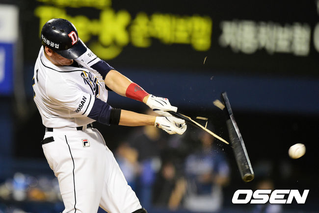 24일 오후 서울 잠실야구장에서 열린 '2014 한국야쿠르트 세븐 프로야구' 두산 베어스와 NC 다이노스의 경기, 3회말 2사에서 두산 칸투가 우전안타를 날리고 있다.