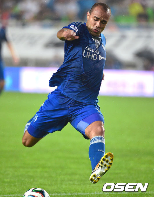 24일 오후 수원시 수원월드컵경기장에서 열린 현대오일뱅크 K리그 클래식 2014 성남FC와 수원 삼성의 경기, 전반 수원 로저가 슛을 시도하고 있다.