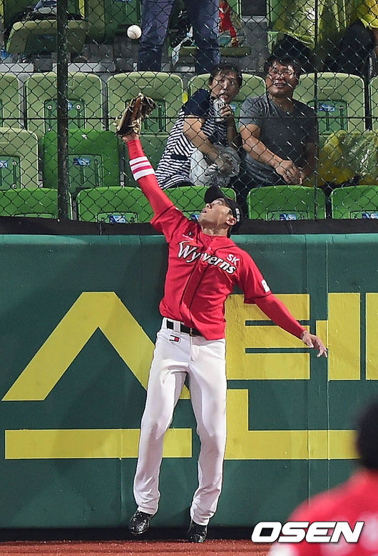 24일 오후 대구 시민구장에서 열린 '2014 한국야쿠르트 세븐 프로야구' 삼성 라이온즈와 SK 와이번스의 경기 6회말 1사 김헌곤의 2루타 타구를 이명기가 놓치고 있다.