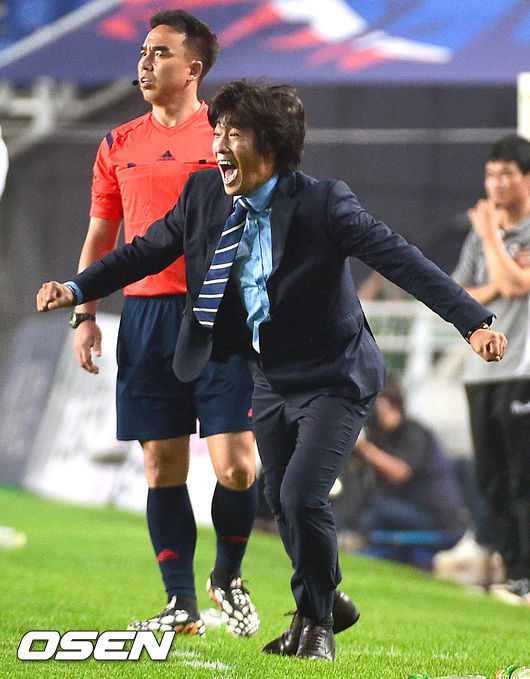 후반 수원 서정원 감독이 정대세의 헤딩골에 환호하고 있다. 하지만 판정은 오프사이드로 노골 선언. / soul1014@osen.co.kr