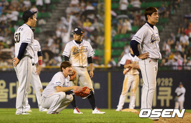 9회초 2사 2루에서 NC 박민우의 좌전 안타에 이상호가 홈에서 아웃되자 NC가 합의 판정을 요구했다. 결과는 아웃. 판정이 진행되는 동안 두산 선수들이 그라운드에서 대기하고 있다. / jpnews@osen.co.kr