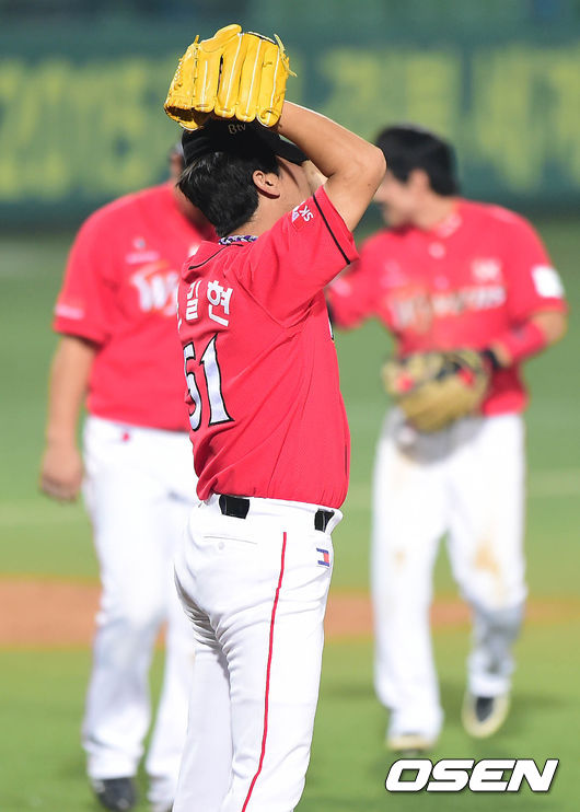 24일 오후 대구 시민구장에서 열린 '2014 한국야쿠르트 세븐 프로야구' 삼성 라이온즈와 SK 와이번스의 경기 종료 후 윤길현이 팔로 머리를 감싸고 있다.