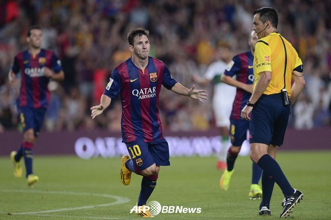 바르셀로나는 25일 새벽(한국시간) 스페인 바르셀로나 캄프 노우에서 열린 2014-2015시즌 스페인 프리메라리가 1라운드 홈경기서 엘체를 3-0으로 완파했다. 전반 44분 하비에르 마스체라노의 퇴장 속 리오넬 메시가 2골을 터트리며 승리를 이끌었다.