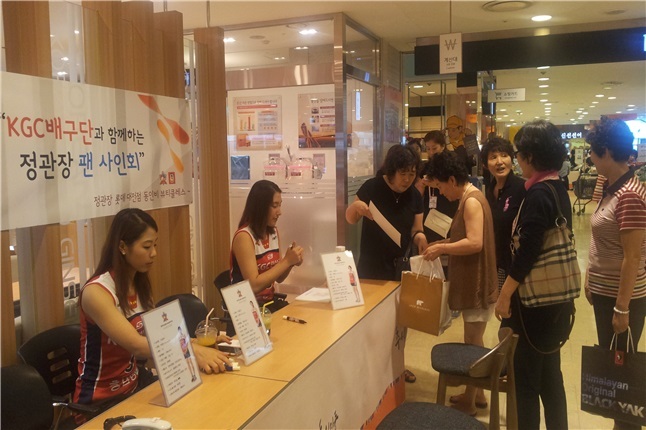 KGC인삼공사 배구단(단장 조성인)이 지난 22일 대전 롯데백화점에서 'KGC인삼공사배구단과 함께하는 동인비 프로모션' 행사를 가졌다.