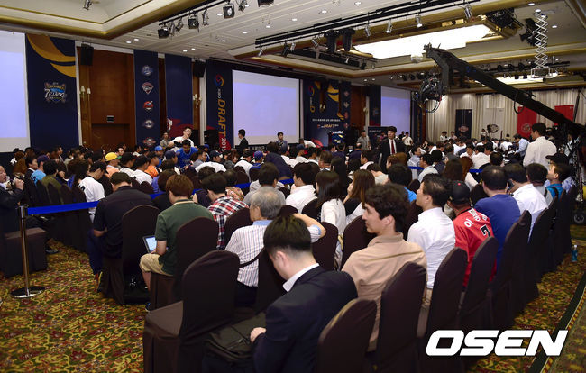 신인 지명회의를 위해 선수들과 가족, 관계자들이 행사장을 가득 채우고 있다.