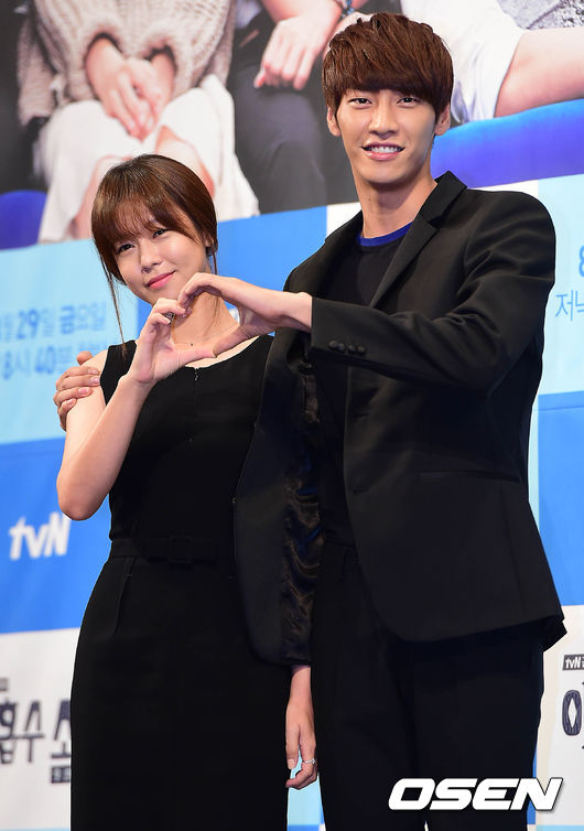 배우 김영광과 경수진이 25일 오후 서울 논현동 임피리얼 팰리스 서울에서 열린 tvN 새 드라마 '아홉수 소년' 제작발표회에 참석해 포토타임을 갖고 있다.