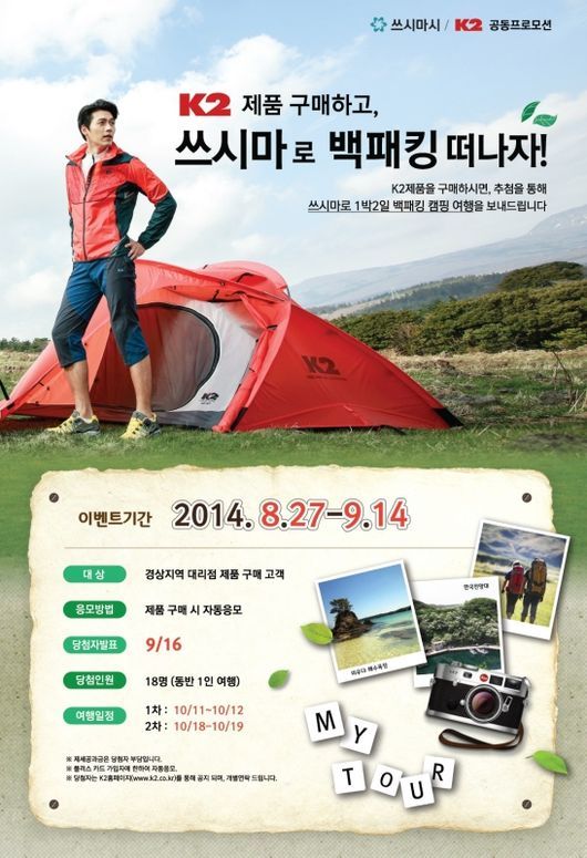 이벤트에 당첨된 이들에게는 1박 2일 쓰시마(대마도)여행을 즐길 수 있는 혜택과 총 10여종에 이르는 K2의 백패킹 용품들을 체험할 수 있는 기회도 제공된다. 이벤트 당첨자는 총 18명을 선발하며, 9월 16일에 발표 예정이다.