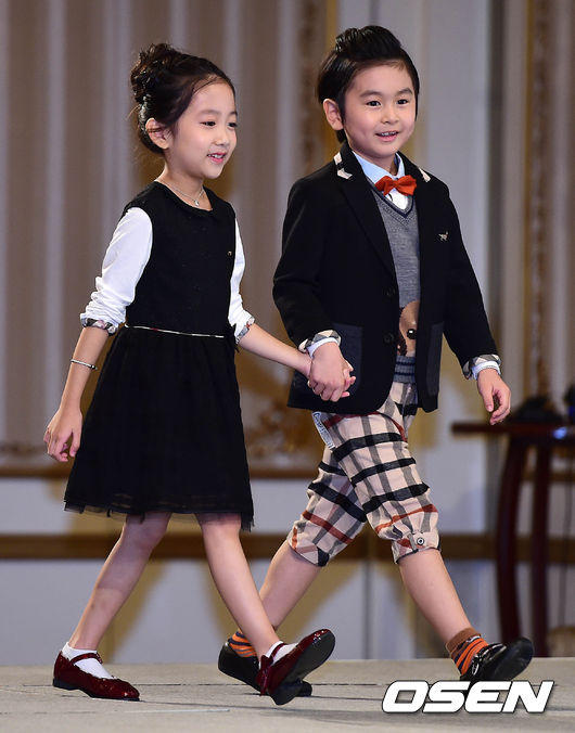 아역배우 최로운과 이채미가 25일 오후 서울 논현동 임피리얼 팰리스 서울에서 열린 tvN 새 드라마 '아홉수 소년' 제작발표회에 참석해 포토타임을 갖기 위해 무대에 오르고 있다.