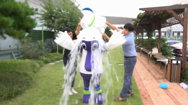 2014 인천장애인아시아경기대회 마스코트인 저노피 드노피가 루게릭병 환자를 위한 아이스버킷챌린지(얼음물 샤워 캠페인)에 동참했다.