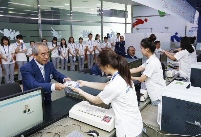 2014 인천아시아경기대회 조직위원회(위원장 김영수)는 25일 오후 송도 미추홀타워 조직위 1층 메인등록센터에서 대회패밀리, 조직위 임·직원, 운영요원, 자원봉사자, 후원사 등 대회 공식 참가자들에 대한 등록카드 교부를 시작했다.