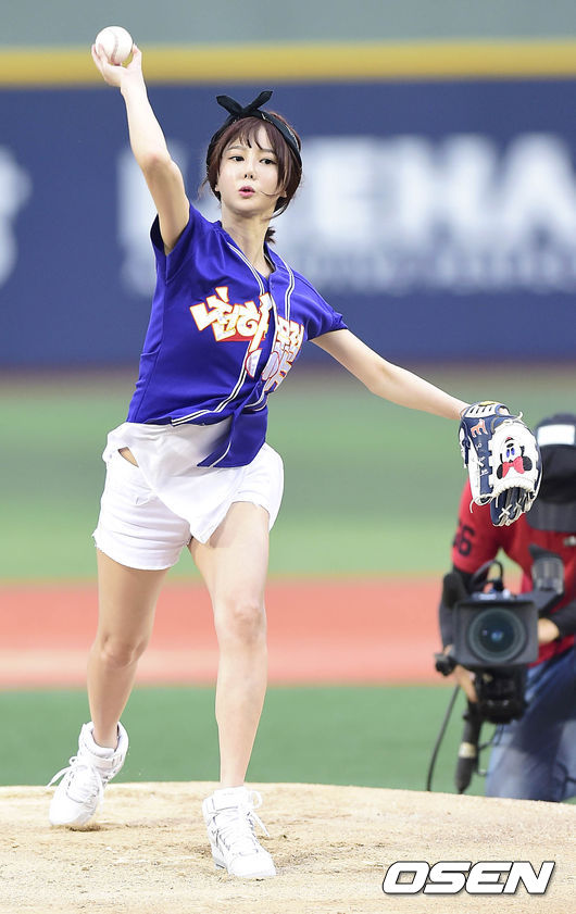 25일 오후 서울 목동야구장에서 '다문화 가정과 넥센히어로즈가 함께하는 한은회-연예인 올스타 자선 야구경기', 경기시작전 방송인 오초희가 시구를 하고 있다.
