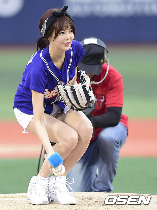 25일 오후 서울 목동야구장에서 '다문화 가정과 넥센히어로즈가 함께하는 한은회-연예인 올스타 자선 야구경기', 경기시작전 방송인 오초희가 떨어진 공을 줍고 있다.