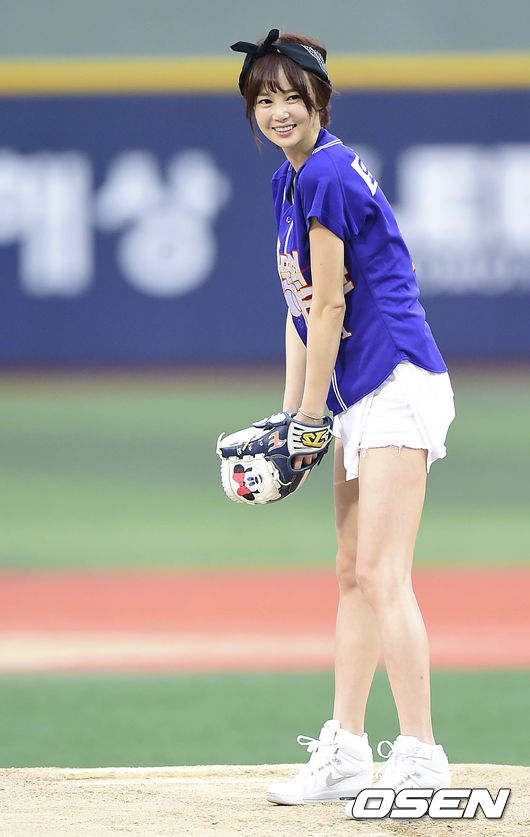 25일 오후 서울 목동야구장에서 '다문화 가정과 넥센히어로즈가 함께하는 한은회-연예인 올스타 자선 야구경기', 경기시작전 방송인 오초희가 시구를 하고 있다.