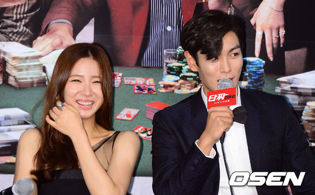 최승현, 신세경이 간담회에서 질문에 답을 하며 즐거워하고 있다.