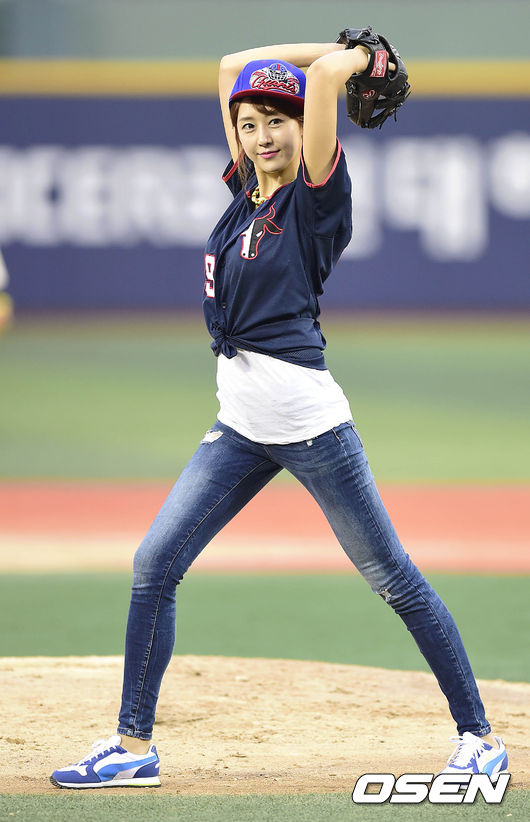 25일 오후 서울 목동야구장에서 '다문화 가정과 넥센히어로즈가 함께하는 한은회-연예인 올스타 자선 야구경기', 가수 한영이 시구를 하고 있다.