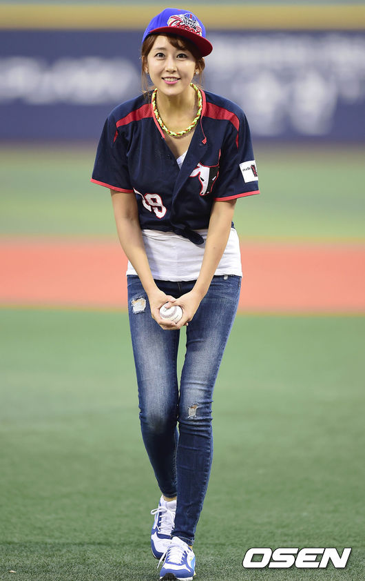 25일 오후 서울 목동야구장에서 '다문화 가정과 넥센히어로즈가 함께하는 한은회-연예인 올스타 자선 야구경기', 가수 한영이 시구후 인사하고 있다.