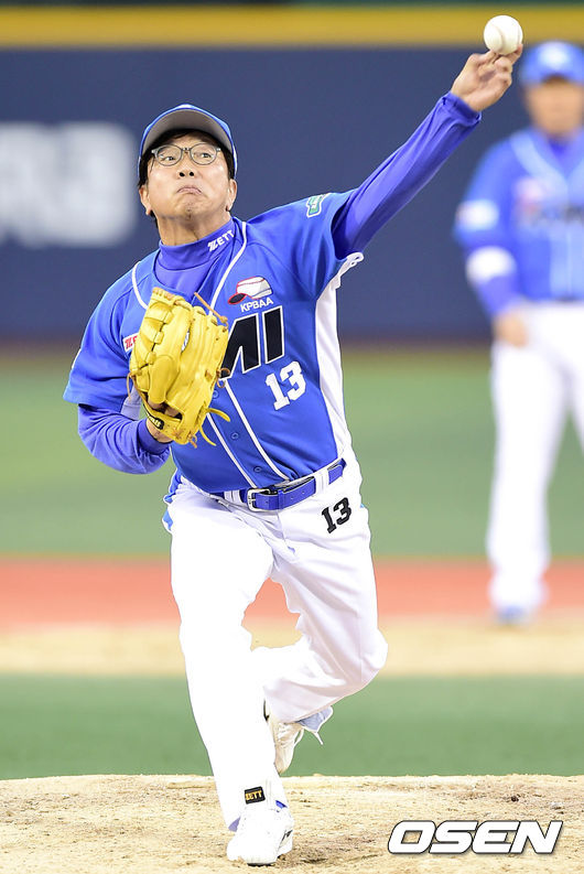 25일 오후 서울 목동야구장에서 '다문화 가정과 넥센히어로즈가 함께하는 한은회-연예인 올스타 자선 야구경기', 1회말 B팀 선발 투수 박철민이 힘차게 공을 던지고 있다.