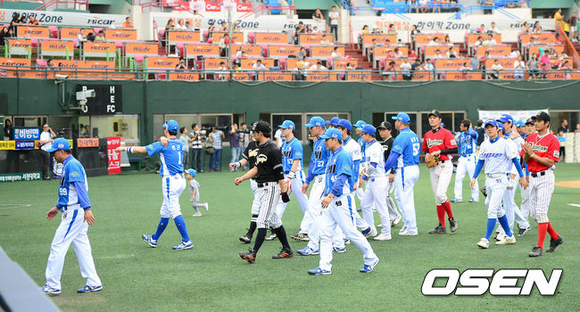 25일 오후 서울 목동야구장에서 '다문화 가정과 넥센히어로즈가 함께하는 한국프로야구은퇴선수협회-연예인 올스타 자선 야구경기', B팀 선수들이 더그아웃으로 들어오고 있다.