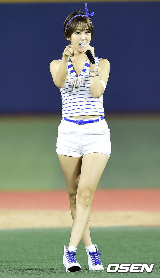 25일 오후 서울 목동야구장에서 '다문화 가정과 넥센히어로즈가 함께하는 한국프로야구은퇴선수협회(이하 한은회)-연예인 올스타 자선 야구경기', 그룹 베스티 혜연이 야구장을 찾아 멋진 무대를 선보이고 있다.