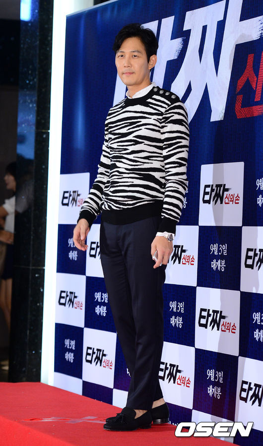배우 이정재가 시사회에 참석해 포즈를 취하고 있다.