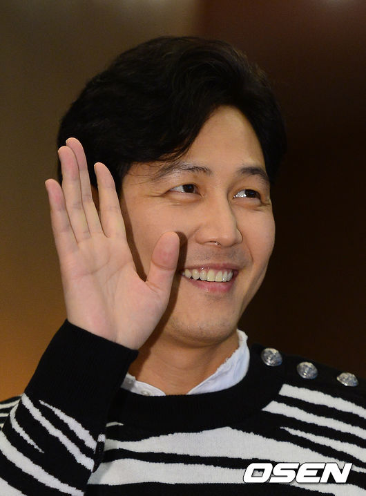 배우 이정재가 시사회에 참석해 포즈를 취하고 있다.