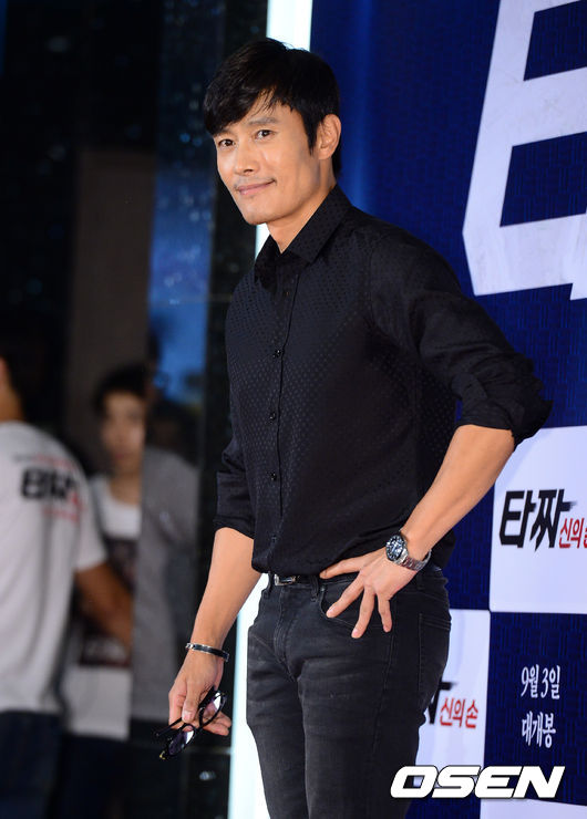 배우 이병헌이 시사회에 참석해 포즈를 취하고 있다.