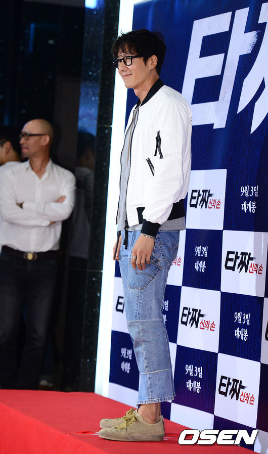 배우 김주혁이 시사회에 참석해 포즈를 취하고 있다.
