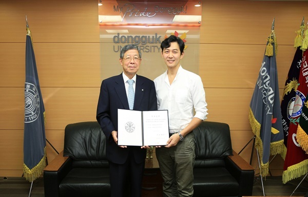 동국대학교는 25일 "동국대 연극학부 99학번인 이정재가 25일 오전 11시 동국대 본관 총장 접견실에서 김희옥 총장을 만나 장학기금 1억 원을 전달했다"고 밝혔다.