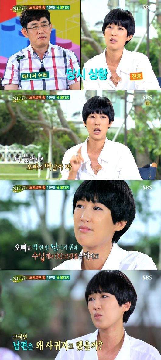 홍진경은 25일 오후 방송된 SBS 예능프로그램 ‘힐링캠프, 기쁘지 아니한가’(이하 ‘힐링’)에서 남편과 결혼하기 전 “내가 3개월 동안 매달렸다”고 고백했다.