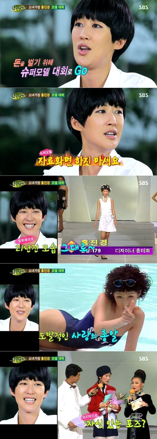 하지만 홍진경의 바람과는 달리 영상이 나왔다. 밝게 화장을 하고 흰 원피스를 입은 어린 홍진경이 조금 어색하게 무대 위를 걸었다. 홍진경은 이 때 ‘베스트포즈상’을 수상하며 이때부터 넘치던 끼를 선보이기도 했다.