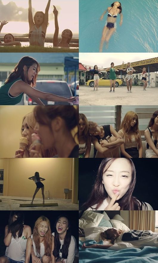 뮤직비디오는 팔딱팔딱 뛰는 젊음을 고스란히 재현했다. 사이판을 배경으로 네 멤버가 신나게 휴가를 즐기는 내용으로 꾸며진 뮤직비디오는 그저 즐겁게 뛰어노는 멤버들의 모습만으로도 상당한 매력을 뿜어냈다. 멤버들은 오픈카를 타고 뻥 뚫린 도로 위를 달리고, 핑크빛 거품을 내며 차를 세차하고, 옷을 훌렁 벗어던지고 수영장으로 뛰어든다. 피곤에 지쳐 뻗어있는 모습까지, 또래 여성들의 휴가를 100% 재현한 뮤직비디오는 인위적인 자극성 없이도 눈을 떼기 어렵게 만든다.